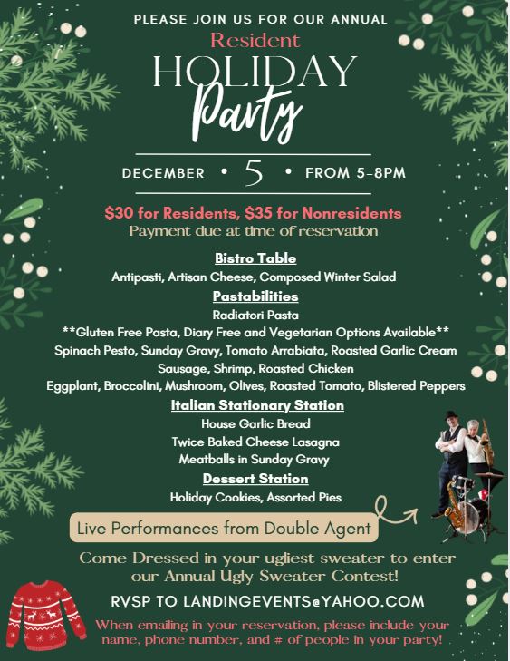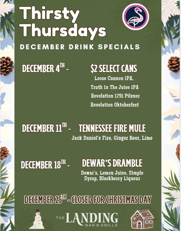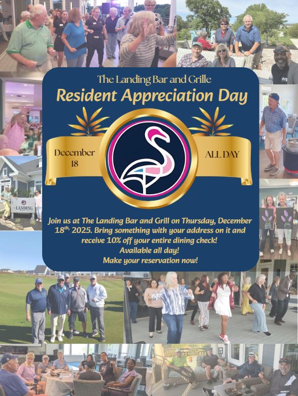 Join us at The Landing Bar and Grill on Thursday, December 18th, 2025. Bring something with your address on it and receive 10% off your entire dining check!