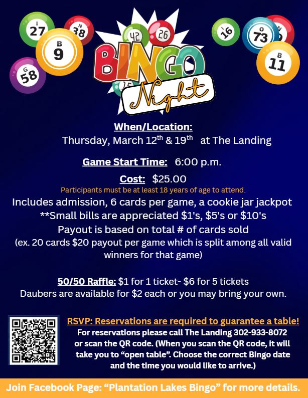 Join us at The Landing for a night of Bingo, great food, and even better company. Grab your friends, enjoy your favorite menu items and drinks, and get ready for an evening full of laughs and prizes. Whether you’re a seasoned player or brand new to the game, Bingo Night at The Landing is the perfect way to shake up your week.