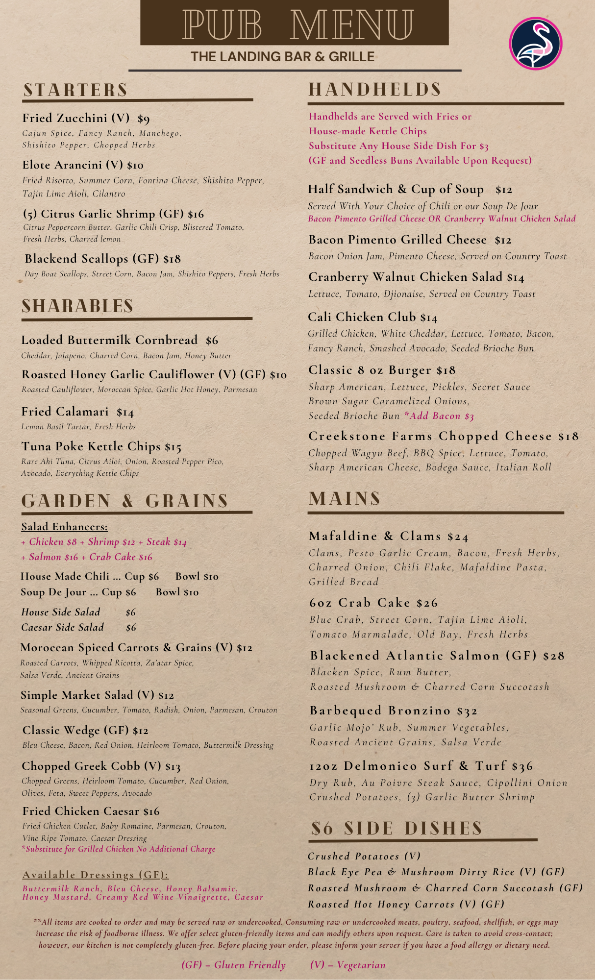 Looking for something gluten-free, vegetarian, or alcohol-free? We’ve got you covered! Ask your server for our special menu, available upon request, featuring fresh, flavorful options tailored to your dietary needs, plus a refreshing mocktail menu to match. Some pricing may vary to reflect ingredient adjustments, but the taste is always top-notch!